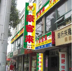 3、從品牌推廣的角度來看,在繁華的地段一個好的店招不光是店鋪坐落地的標志,還要起到戶外廣告的作用。好的店招要求主要是有標準色(字)、寬度、長度、清潔、明亮、燈光要求是亮度、燈的間隔距離、打燈的時間。